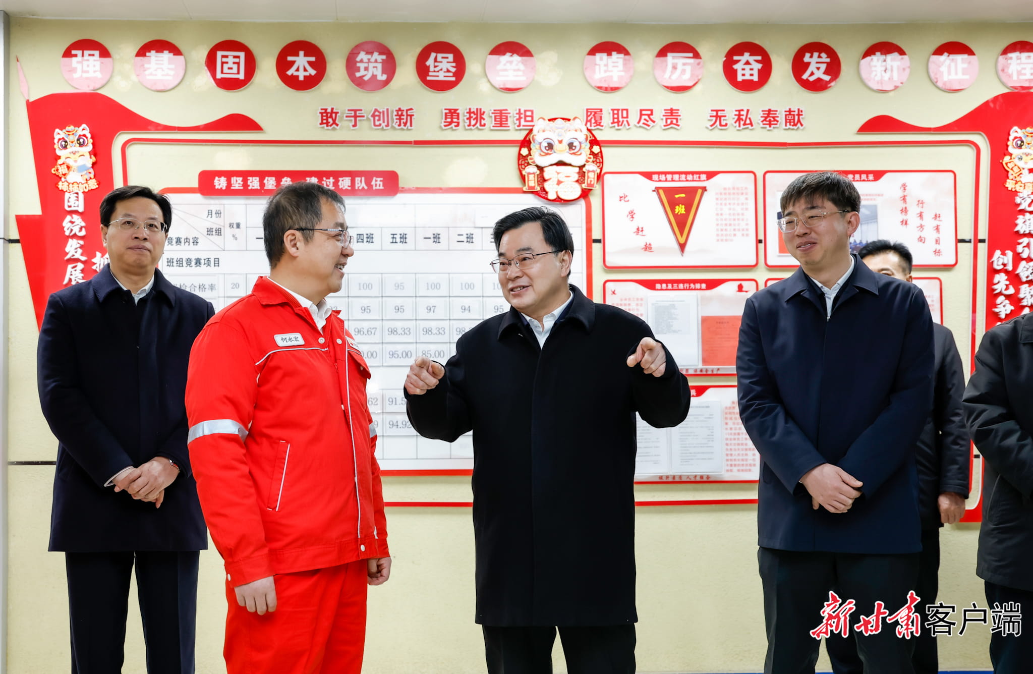 胡昌升先后來(lái)到玉門油田公司、甘肅巨化新材料有限公司、甘肅弘源央廚食品有限公司、酒鋼集團(tuán)宏博新材料公司、甘肅弘通中子科技有限公司、金川集團(tuán)永昌銅業(yè)有限公司、甘肅貝達(dá)生物科技有限公司,深入企業(yè)生產(chǎn)一線和施工現(xiàn)場(chǎng),詳細(xì)了解企業(yè)科技創(chuàng)新、生產(chǎn)經(jīng)營(yíng)、安全生產(chǎn)等情況。他強(qiáng)調(diào),要錨定高端化、智能化、融合化方向,堅(jiān)持以科技創(chuàng)新引領(lǐng)產(chǎn)業(yè)創(chuàng)新,推進(jìn)石化化工、有色冶金等傳統(tǒng)產(chǎn)業(yè)延鏈補(bǔ)鏈強(qiáng)鏈,壯大新能源、新材料、生物醫(yī)藥、商業(yè)航天、低空經(jīng)濟(jì)等產(chǎn)業(yè)集群,不斷提高產(chǎn)業(yè)體系現(xiàn)代化水平,形成上下游產(chǎn)業(yè)相互銜接、各展其長(zhǎng)、同向發(fā)力的生動(dòng)局面。要強(qiáng)化數(shù)智賦能,深入開展“人工智能+”行動(dòng),充分發(fā)揮數(shù)字經(jīng)濟(jì)賦能、賦智、賦值作用,推進(jìn)數(shù)字化車間、智能工廠、未來(lái)工廠建設(shè),加快培育發(fā)展新動(dòng)能。要縱深推進(jìn)“引大引強(qiáng)引頭部”行動(dòng),大力引進(jìn)高技術(shù)、高成長(zhǎng)性、高附加值企業(yè),帶動(dòng)產(chǎn)業(yè)鏈向價(jià)值鏈中高端躍升。要扎實(shí)開展?fàn)I商環(huán)境創(chuàng)一流行動(dòng),堅(jiān)持“有事上門、無(wú)事不擾”,積極主動(dòng)為企業(yè)解決發(fā)展難題,著力營(yíng)造尊商重商、親商愛商、安商富商的濃厚氛圍。